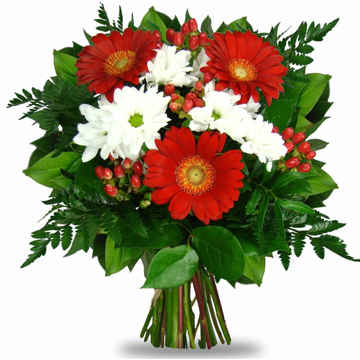 Tato nádherná kytice kombinuje elegantní bílé chryzantémy s výraznými červenými germínami a jemnými plody hyperica, doplněná čerstvou dekorativní zelení. Výsledkem je harmonická a svěží kompozice, která krásně ozdobí každý interiér a rozjasní jakoukoli příležitost, ať už jde o poděkování, gratulaci nebo milé překvapení. Květiny spolu ladí v kontrastní, energizující souhře barev, která působí optimisticky a přirozeně. Doručujeme v den objednávky během pracovních dnů s možností zvolit přesný čas doručení, samozřejmostí je potvrzení o doručení e-mailem. Naši zkušení floristé věnují každé kytici maximální péči.
