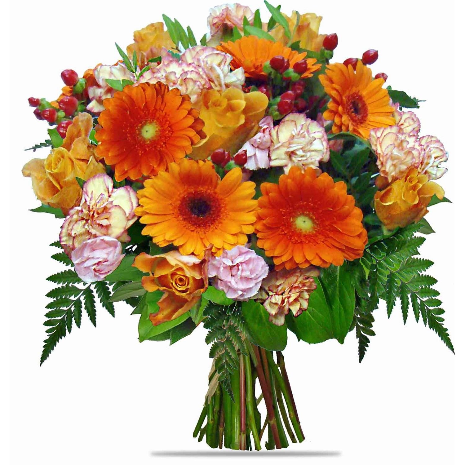 Naše okouzlující kytice v sobě spojuje energii a radost oranžových růží, mini gerber a jemných karafiátů, které vynikají ve společnosti červených bobulek hyperica a svěží dekorativní zeleně. Tato květinová kompozice působí vřele a optimisticky, přináší do každého prostoru živou atmosféru, která vykouzlí úsměv na tváři. Hodí se pro oslavy, poděkování nebo jako milé překvapení pro radost všedního dne. Květiny jsou pečlivě a profesionálně uvázané našimi zkušenými floristy. Rádi doručíme v den objednávky během pracovních dnů a potvrzení o doručení obdržíte pohodlně e-mailem. Vážíme si osobité formy předání a nabízíme možnost objednat přesný čas doručení.