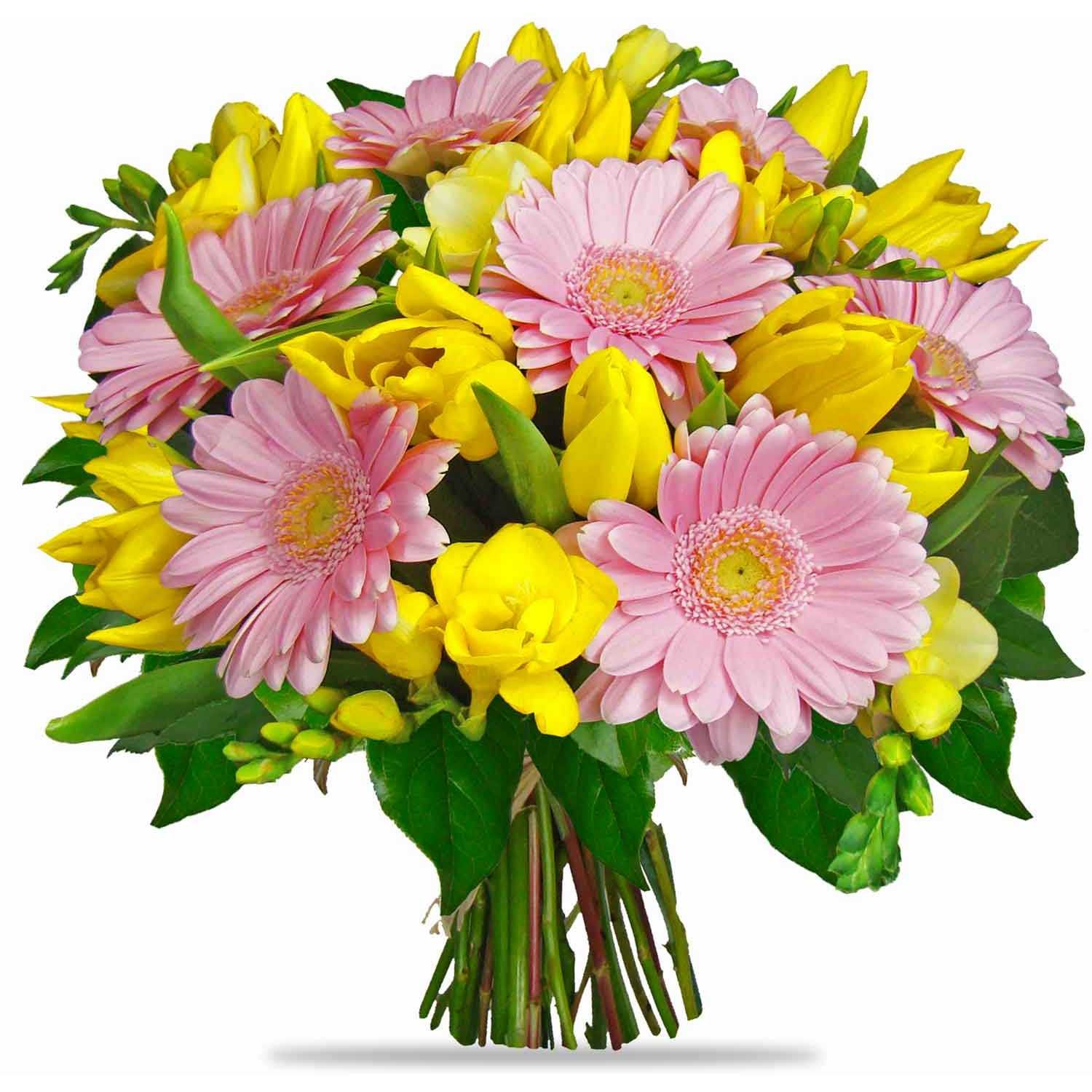 Tato kytice spojuje jemné růžové germínky s veselými žlutými tulipány a fréziemi, což vytváří harmonickou kombinaci plnou optimismu a radosti. Svěží odstíny navzájem ladí a vdechují kytici jarní atmosféru, která rozjasní každý interiér i náladu obdarovaného. Kytice je vhodná pro oslavy, poděkování i zpříjemnění běžného dne. Profesionálně uvázané květiny, doplněné svěžím zeleným salalem, působí svěže a elegantně zároveň. Doručujeme v den objednávky během pracovních dnů a nabízíme možnost výběru přesného času doručení. Samozřejmostí je doručení potvrzené e-mailem, díky čemuž máte jistotu, že Vaše překvapení dorazilo v pořádku.
