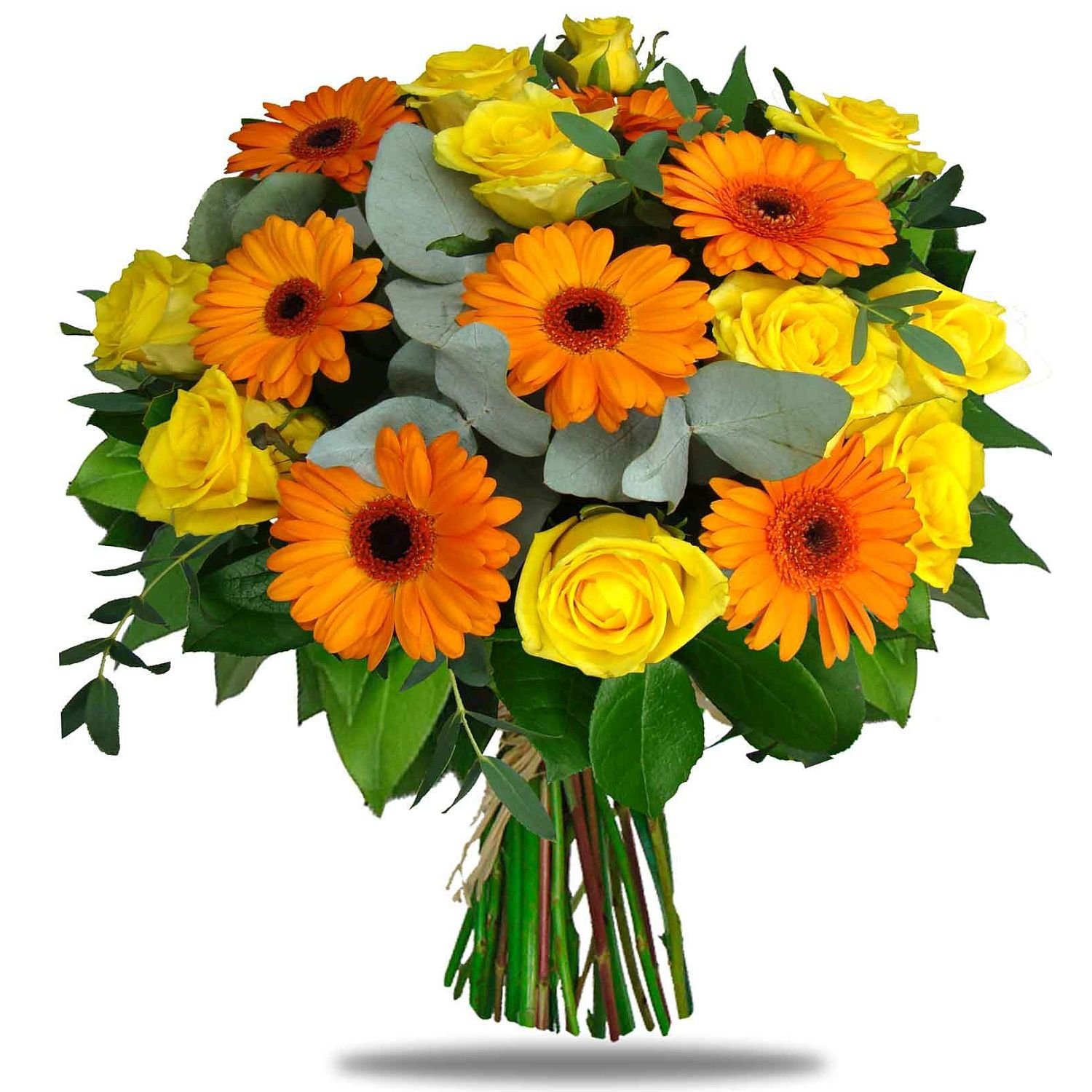 Tato svěží kytice v sobě propojuje zářivé žluté růže s veselými oranžovými germínami, které jsou doplněny eukalyptem a čerstvou zelení. Společně vytvářejí harmonickou a optimistickou kompozici, která rozzáří každý den. Květiny působí vesele, energicky a přináší pozitivní náladu – jsou tak ideální pro oslavu narozenin, poděkování nebo jako překvapení pro radost. S radostí doručujeme kytice v den objednávky během pracovních dnů a nabízíme možnost objednat přesný čas doručení. Samozřejmostí je potvrzení o doručení e-mailem, takže máte jistotu, že Vaše překvapení dorazí ve správný okamžik. Vše pečlivě vážeme zkušení floristé.