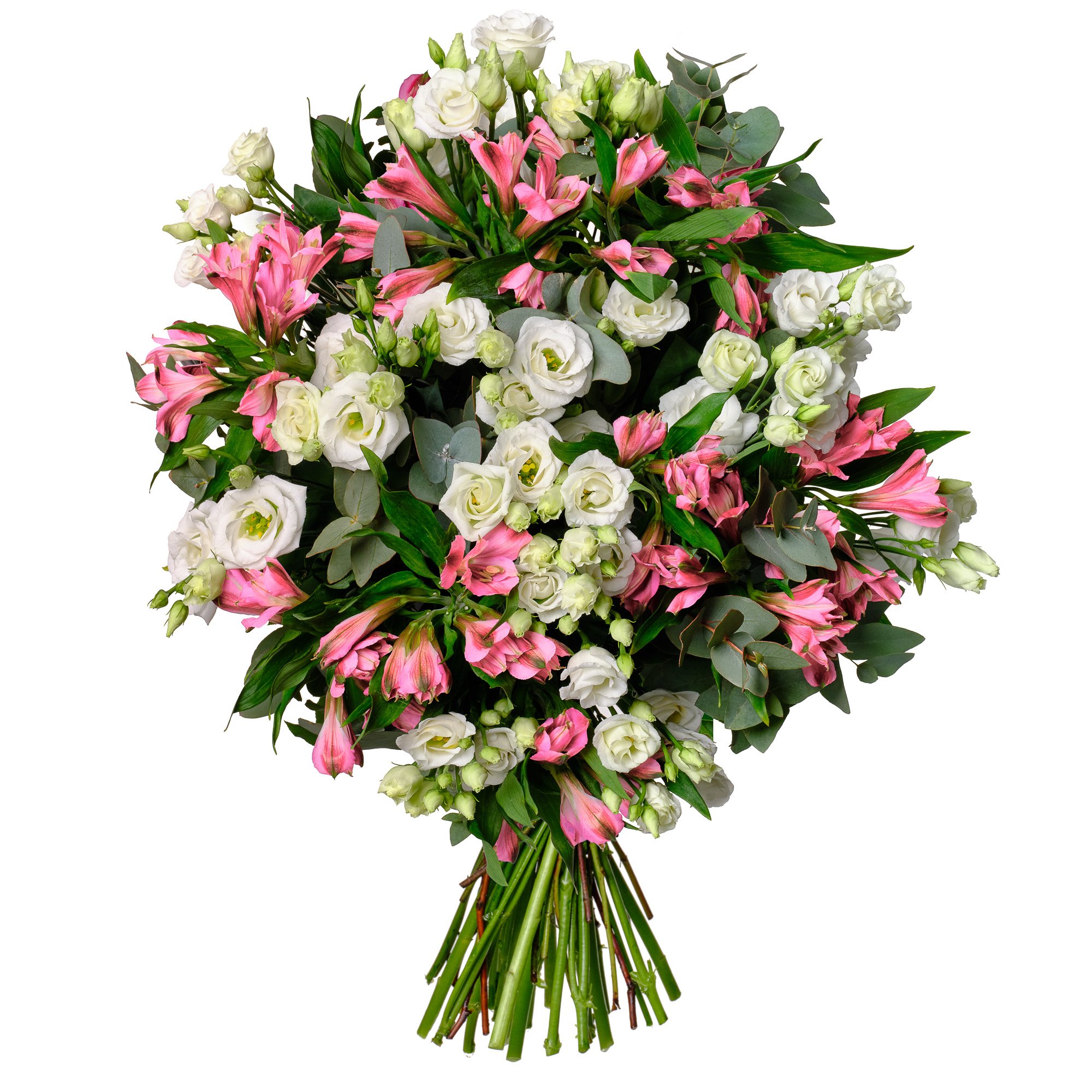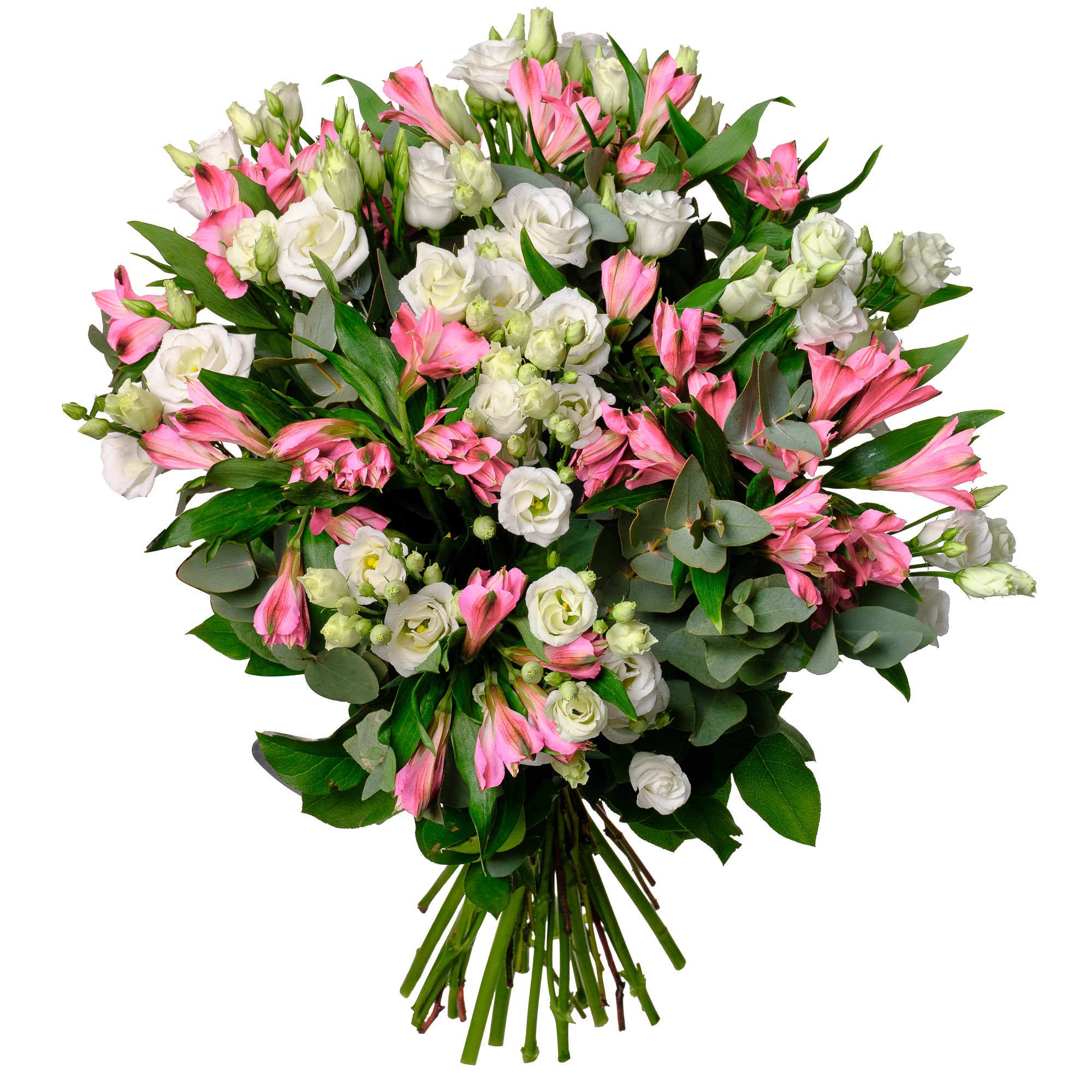 Tato elegantní kytice v sobě propojuje jemnost bílých eustom a svěžest růžových alstromeřií, které spolu vytvářejí harmonickou a svěží kombinaci. Díky přirozenému aranžmá s doplňující zelení působí opravdu vzdušně a čistě. Kytici rádi doporučíme ke slavnostním příležitostem, pro radost i pro podtržení výjimečné atmosféry v jakýkoli všední den. Všechny květiny pečlivě vážeme z čerstvých stonků a klademe důraz na krásnou prezentaci při předání. Samozřejmostí je doručení v den objednávky během pracovních dnů, včetně možnosti zvolit přesný čas doručení. Zajišťujeme jistotu doručení a potvrzení e-mailem.