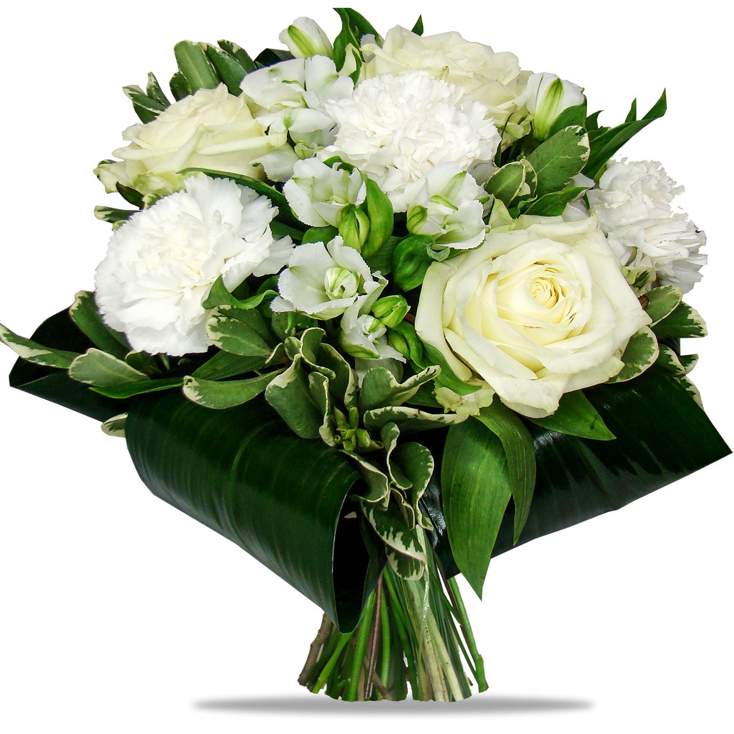 | Standardní | 3 ks bílé růže, 3 ks karafiáty, 3 ks alstromérie a dokorativní zeleň |